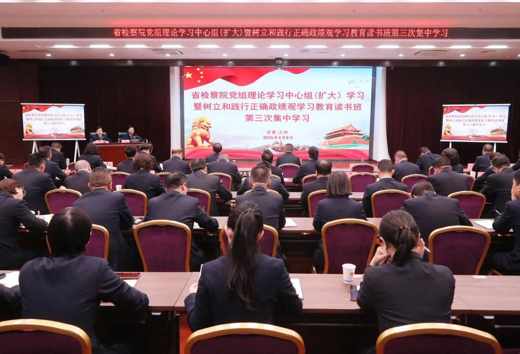 开展党组理论学习中心组(扩大)学习暨树立和践行正确政绩观学习教育读书班第三次集中学习,邀请甘肃省委党校(甘肃行政学院)中共党史教研部主任、教授 王锐以“树立和践行正确政绩观 奋力谱写中国式现代化甘肃篇章”为题作专题辅导。省检察院党组成员、政治部主任李建功主持会议,省检察院机关全体干警参加。