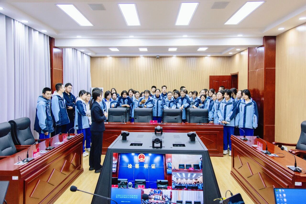 随后,师生们来到检察听证室。检察干警以通俗易懂的语言,介绍了检察听证的程序、功能及其在促进司法公正、化解社会矛盾中的独特价值,让同学们对“阳光司法”有了更为直观的理解。