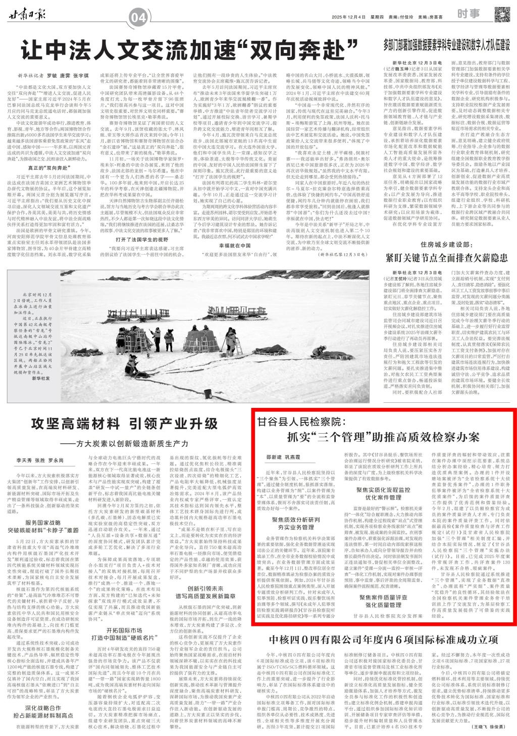 2025年12月4日,甘肃日报刊发《甘谷县人民检察院:抓实“三个管理”助推高质效检察办案》。