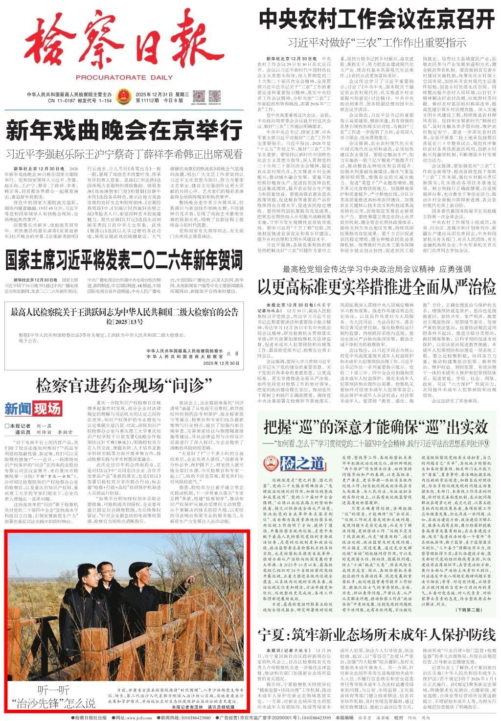 2025年12月31日,检察日报头版刊发《听一听“治沙先锋”怎么说》。