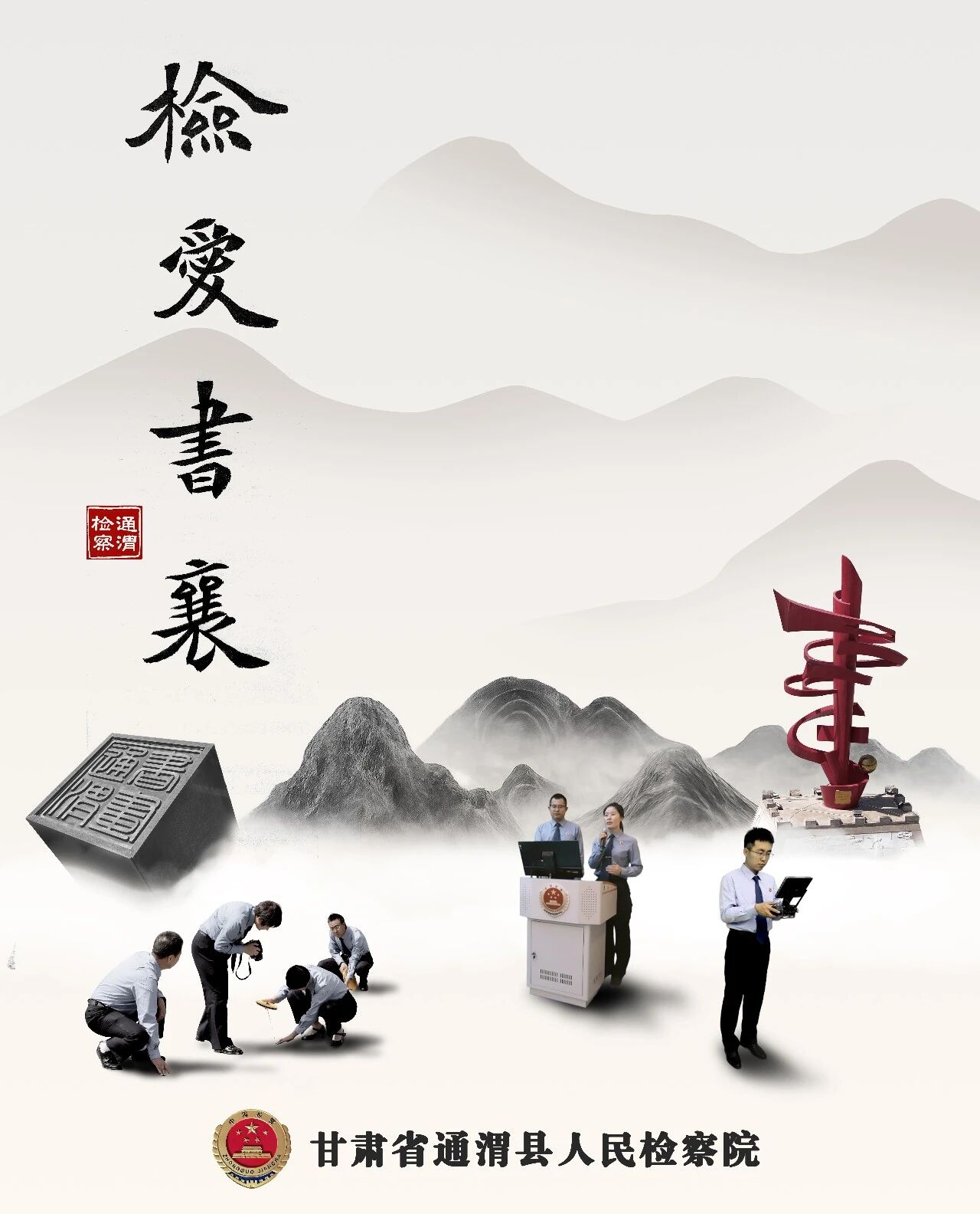 通渭古称平襄,境内现存我国最早的长城——战国秦长城,被国务院列为全国重点文物保护单位。通渭也是一方赓续红色血脉的热土,“榜罗会议”决定红军长征的落脚点。通渭还是一个翰墨飘香的县城,“中国书画艺术之乡”享誉全国,书画文化底蕴深厚、习字作画久盛不衰。新时代的通渭检察人,赓续长征精神、传承书画匠心,砥砺担当作为,将“中锋立骨”“计白当黑”“水墨相发”等书画创作理念引入文物保护、未成年人检察和矛盾纠纷化解等工作,深度融入县域多元社会治理,以“爱”促治、以“爱”襄和,用文化之“韵”全面激活治理活力,绘就县域社会治理现代化建设的“水墨长卷”!